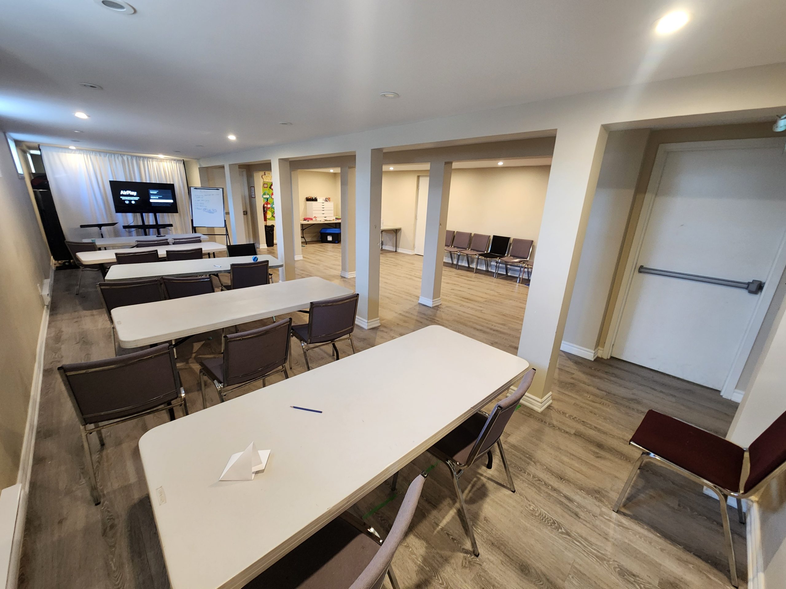 This is the ideal space for your small meetings or gatherings that still require a collaborative and professional environment. This space offers more seating than our Board Room with the ability to rearrange tables and chairs.